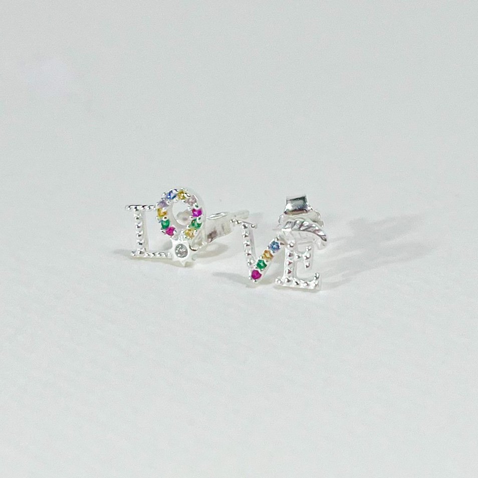 Brinco Love em Prata com pequenos detalhes em micro cravação de zircônias