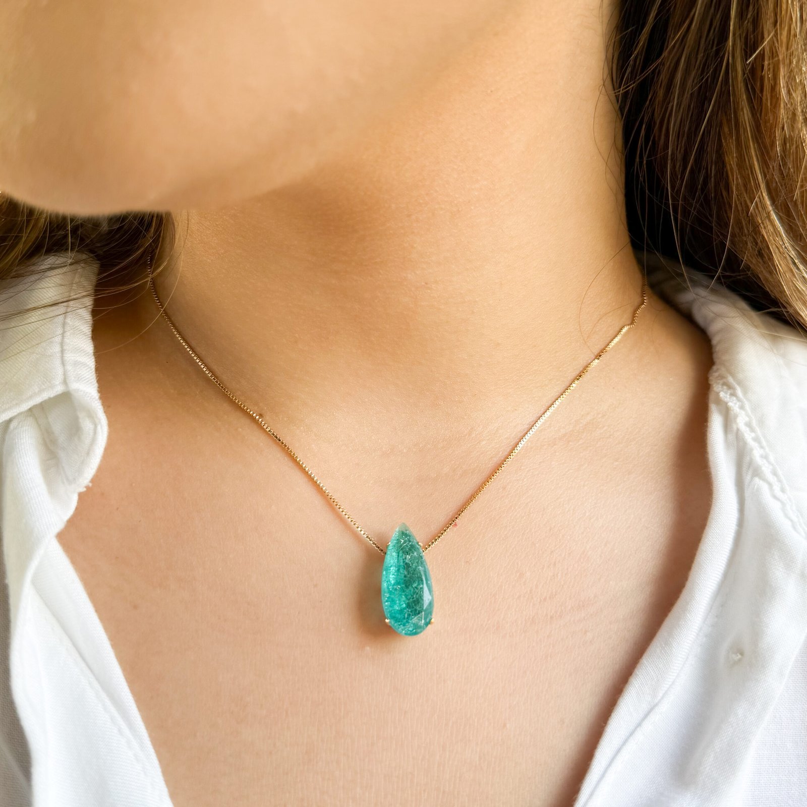 Gargantilha Pedra Fusion Verde Folheada a Ouro 18K