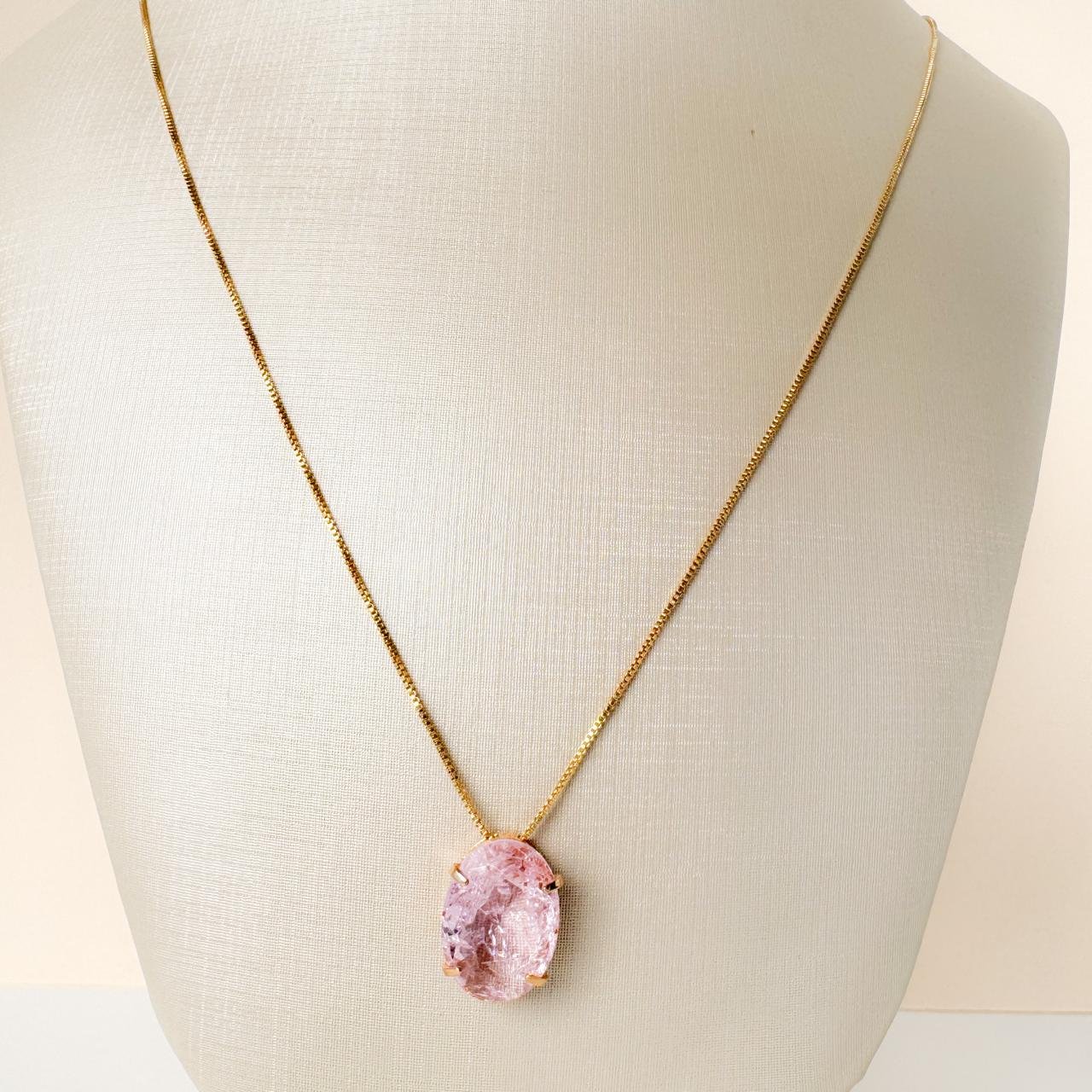 Gargantilha Pedra Cristal Rosa folheada a ouro 18k