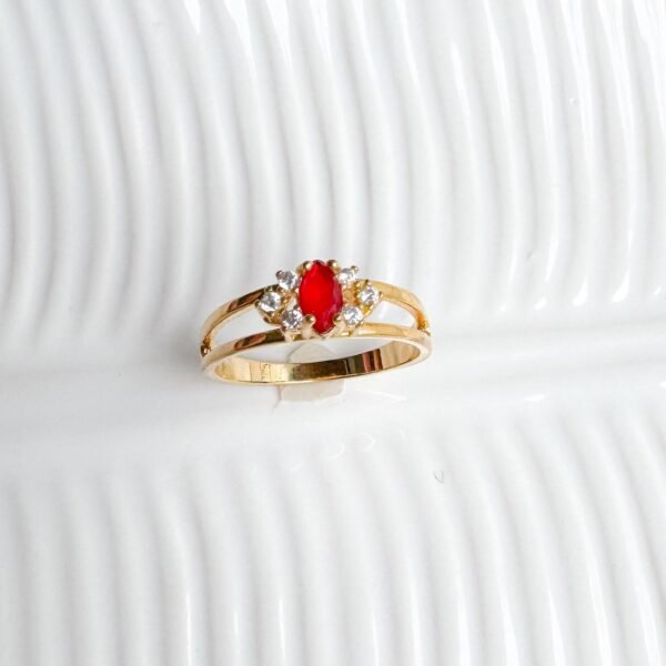 - Deslumbrante pedra central na cor Rubi, que adiciona um toque de cor e elegância.