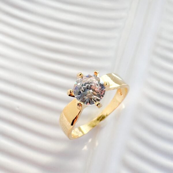 Seu design clássico, com uma pedra central que brilha intensamente, simboliza não apenas o compromisso, mas também a beleza singular de cada história de amor. O brilho do folheado a ouro confere um toque luxuoso, garantindo que o anel se destaque em qualquer ocasião.