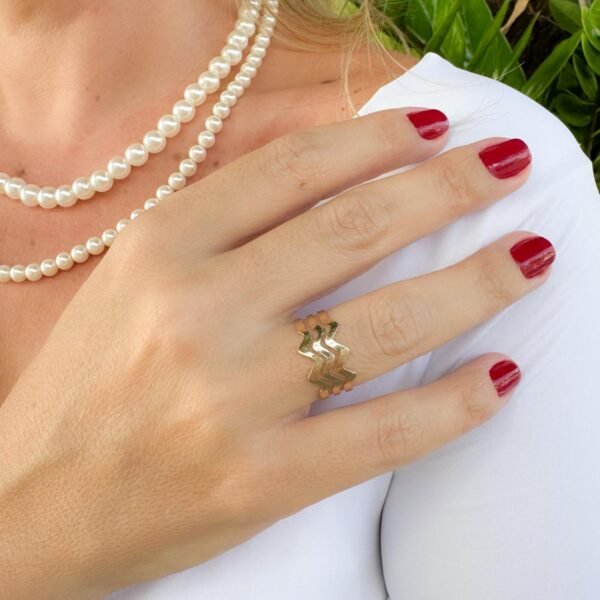 Apresentamos o sofisticado Anel Swell – um acessório que exala elegância e personalidade. Com um design arrojado em curvas onduladas e um acabamento folheado a ouro reluzente, este anel capta a essência da modernidade e do estilo refinado. Sua estrutura regulável o torna ainda mais versátil, permitindo um ajuste perfeito em qualquer dedo, ideal para mulheres que valorizam conforto sem abrir mão do glamour.