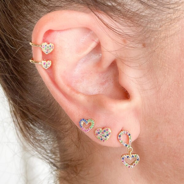 O Brinco Coração folheado a ouro 18k e micro cravejado de zircônias é uma peça versátil que pode ser usada por mulheres de todas as idades e estilos. Ele pode ser combinado com outros acessórios, como colares e pulseiras, para criar um visual completo romântico e harmonioso.