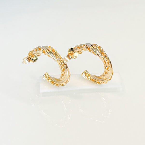 Brinco Meia Argola Filigrana Folheado a ouro 18k
