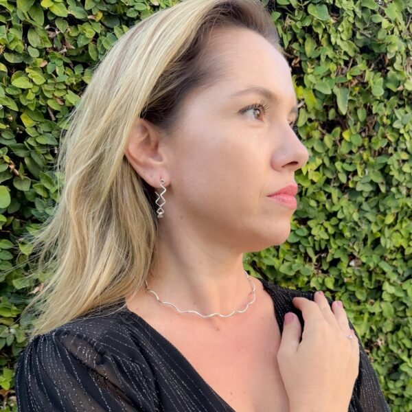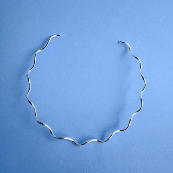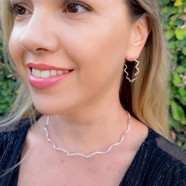 Apresento a sofisticada choker aro folheada a prata, uma peça de design moderno e minimalista que atrai olhares por sua originalidade e elegância. Com formato ondulado, ela traz um visual inovador que transmite estilo e personalidade. Sua estrutura leve e aberta permite um encaixe confortável, destacando o colo de maneira suave e glamourosa.