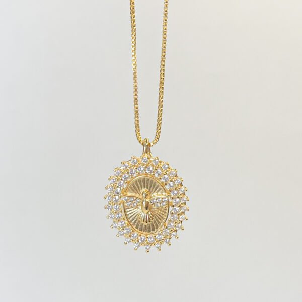 Descubra a beleza e a espiritualidade da Gargantilha Espírito Santo, um acessório que simboliza fé e sofisticação. Folheada a ouro 18k e adornada com zircônias de alta qualidade, esta joia é perfeita para qualquer ocasião.