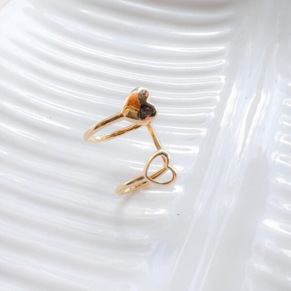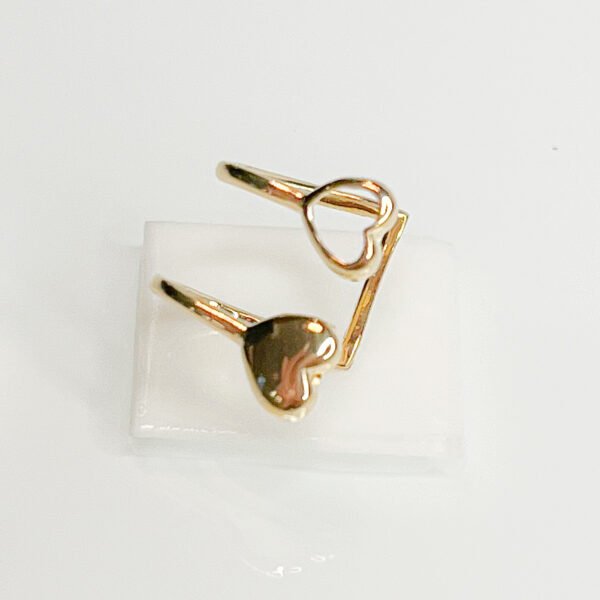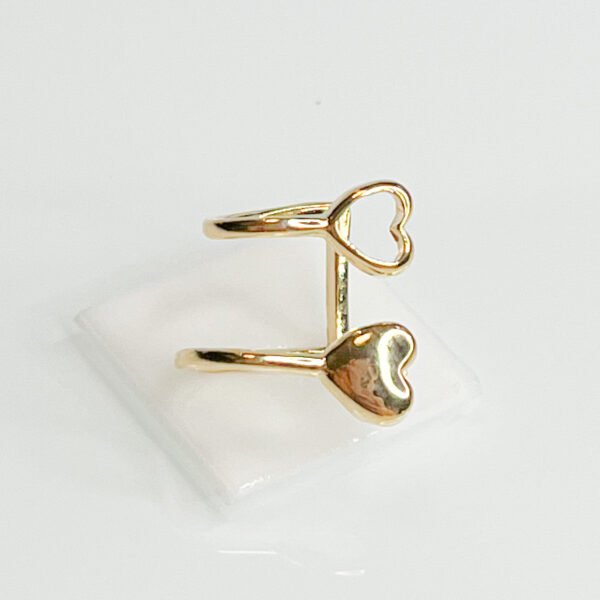 O Piercing Fake Coração folheado a ouro 18k apresenta dois corações sendo um vazado e o outro maciço. É uma excelente escolha para quem deseja experimentar um piercing sem ter que fazer um furo real na orelha.